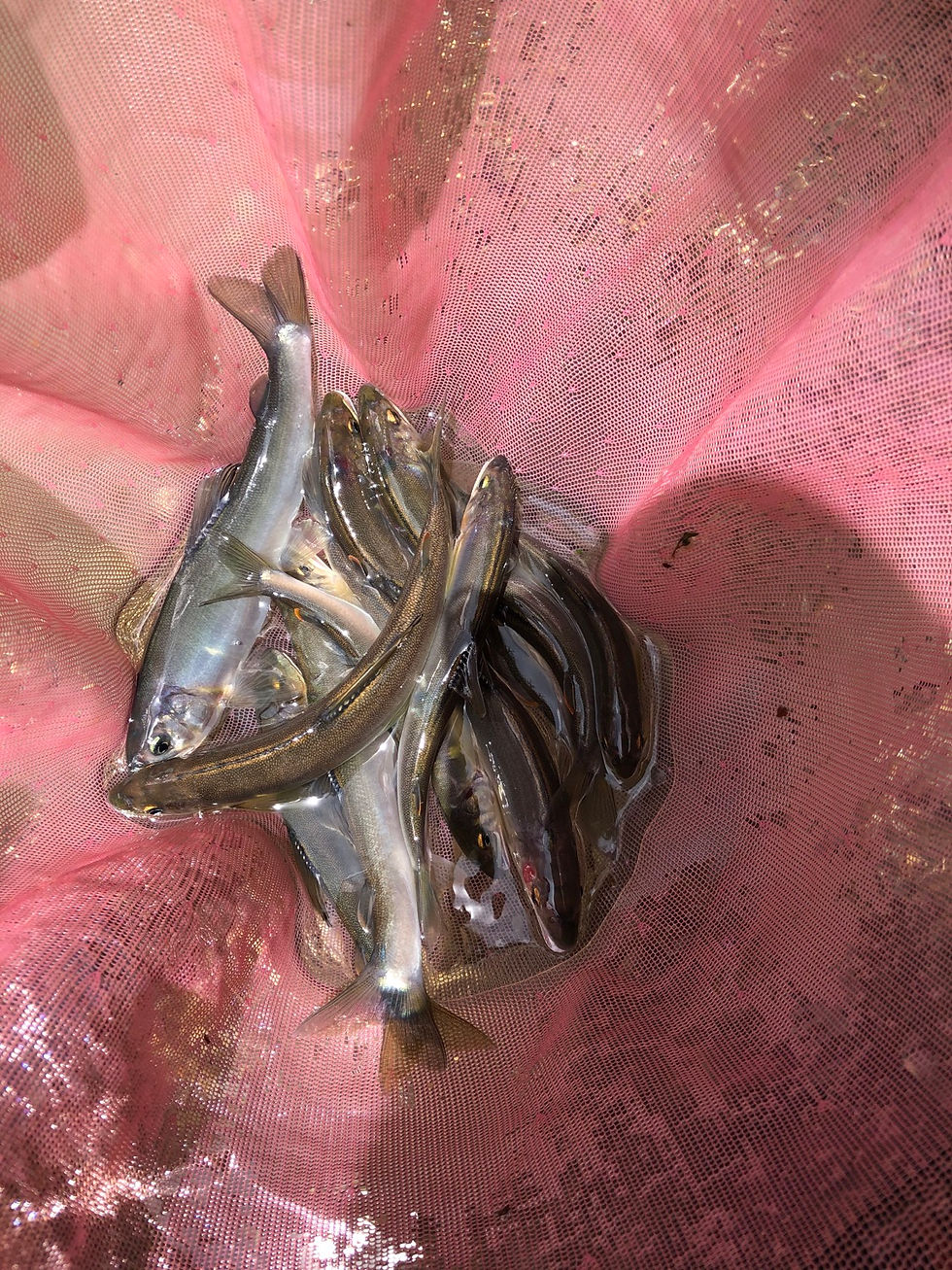 小さめの養殖オトリ(左上)が大きく見えました。
