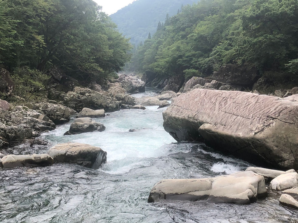 右岸からの攻め方が足場も良く基本となりますが。当たり前の流れで一通り釣れたら、見逃しそうな小さなシロアワのタナや、立ち込んで左岸のヘチを狙うと思わぬ大鮎が釣れます。